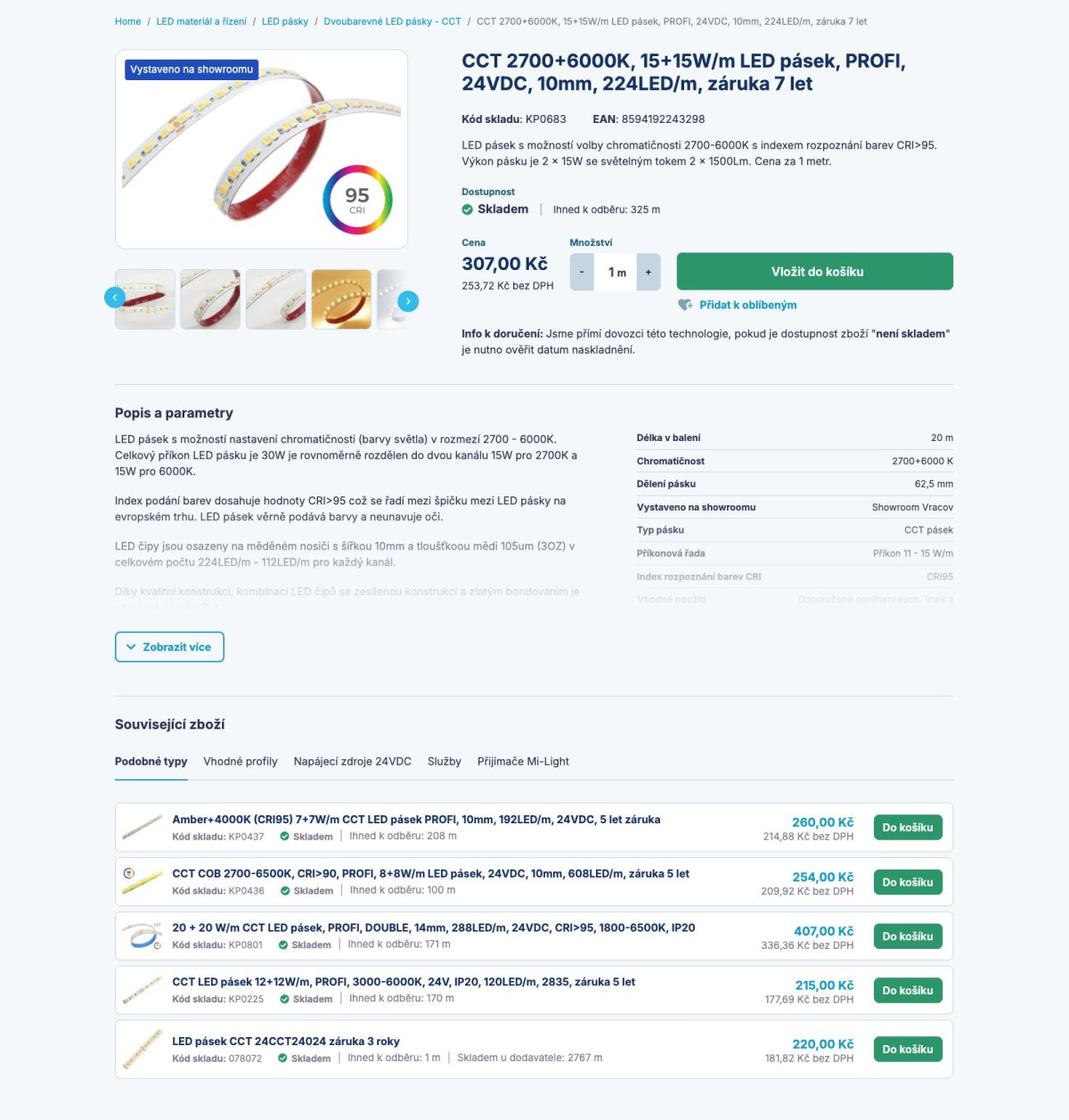 Popis a parametry jsou v úvodním zobrazení zkrácené. Jednak proto, aby se zvýšila šance, že se návštěvníci dostanou k souvisejícímu zboží, jednak i proto, že je počet parametrů a délka popisku často v nerovnováze a vizuálně to na první pohled nepůsobní dobře.