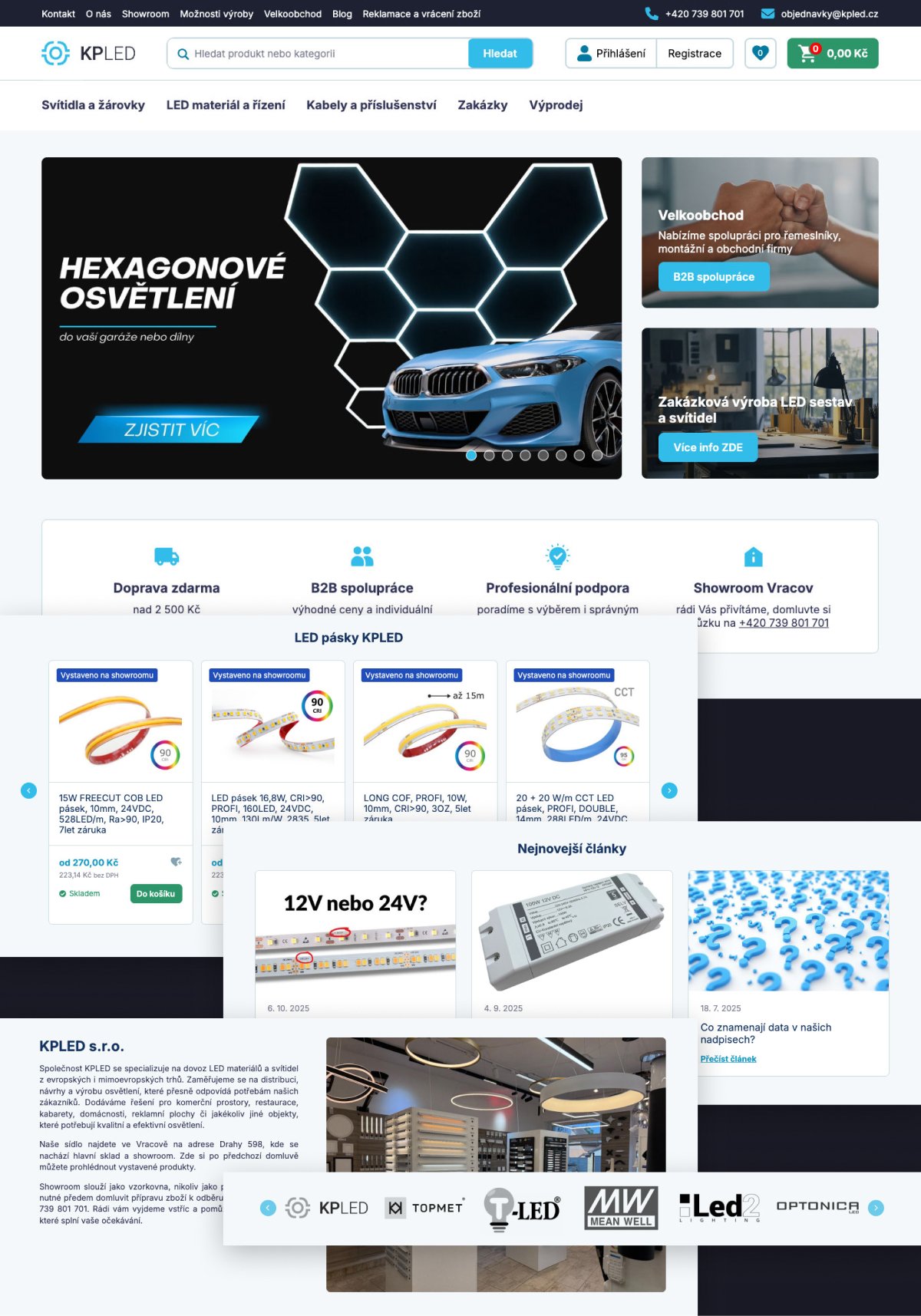 Na homepage najdete aktuální nabídky, hlavní výhody shopu, základní přehled sortimentu a doplňkové věci jako nejnovější články v blogu nebo krátký text o společnosti.