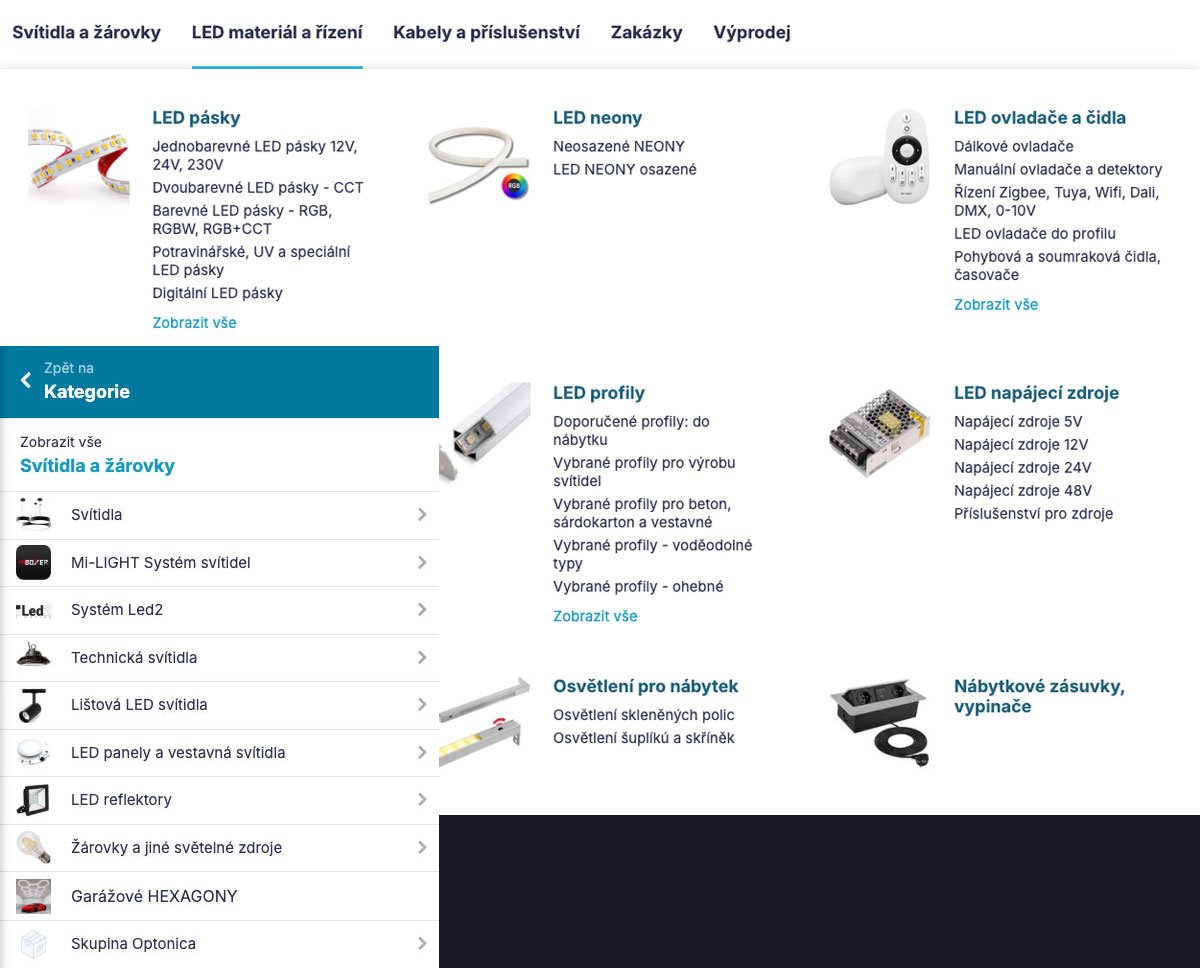 Menu jsme proto udělali tak, že se dá rovnou přejít až do třetí úrovně. Aby se všechno vešlo, je počet podkategorií nejprve omezen, ale dá se rozbalit.