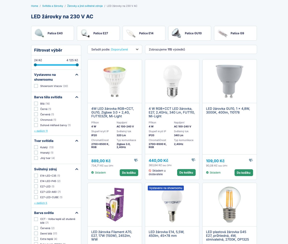 Kromě samozřejmostí jako jsou podkategorie nebo filtrování jsme výpis produktů doplnili i o vychytávku v podobě možnosti parametry vypsat přímo na dlažcici. Zákazník se tak může rychle podívat, jestli produkt odpovídá jeho požadavkům, aniž by ho musel rozklikávat. Použitelnost a rychlost je pro KPLED na prvním místě.