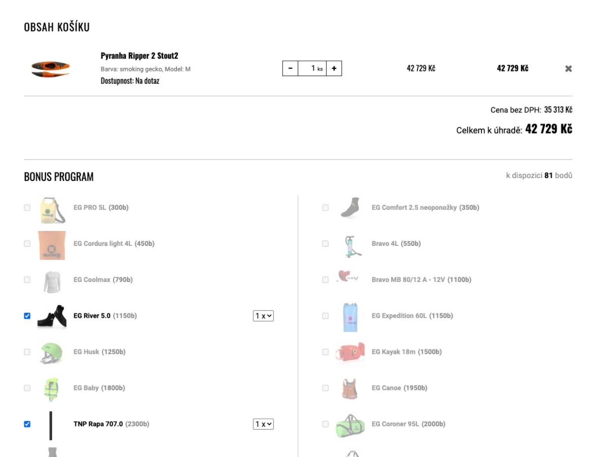 Přehledný vodácký eshop s unikátním bonusovým programem