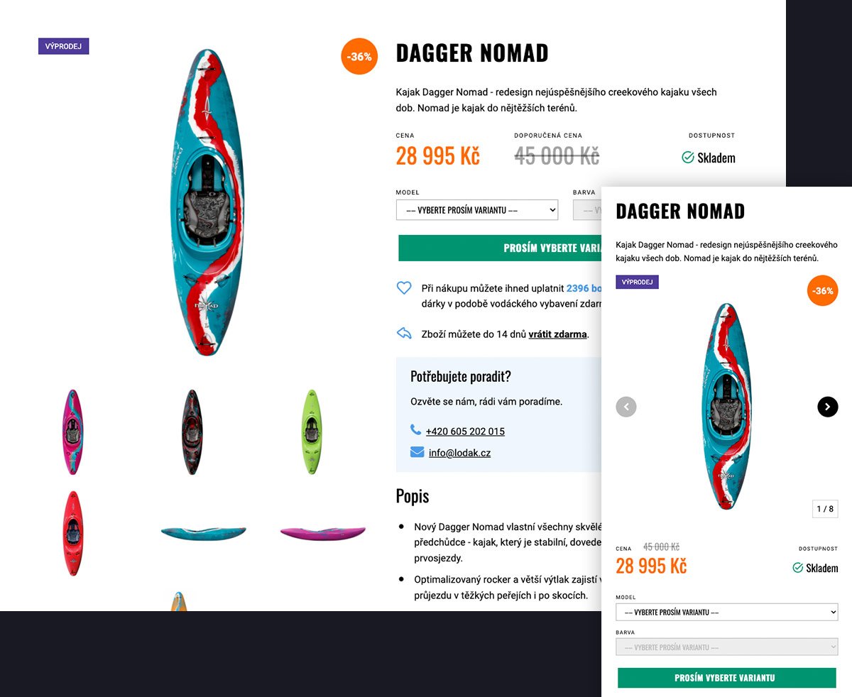Na stránce produktu jsme se zaměřili na to, aby byly všechny důležité informace viditelné hned na první dobrou – bez dlouhého scrollování. A to i na mobilu.