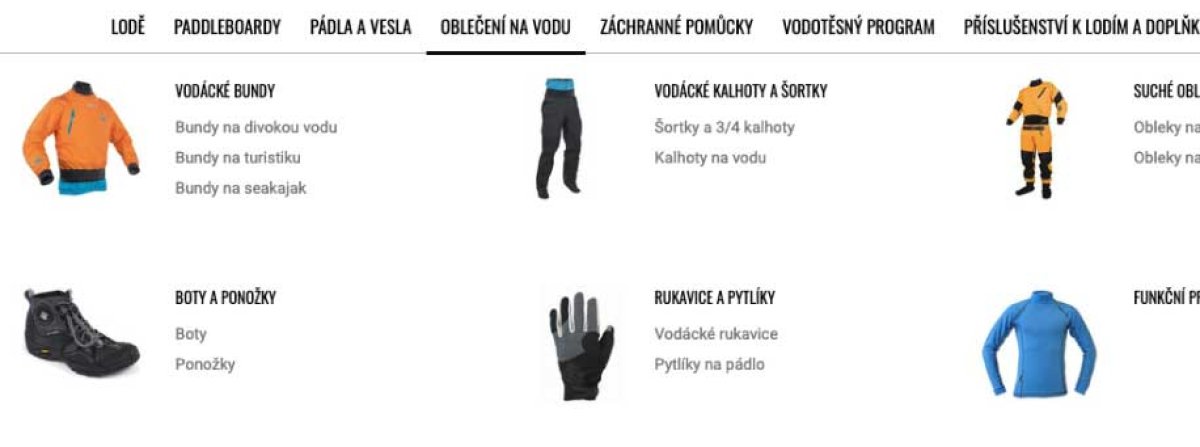 Po najetí na hlavní kategorii se rozbalí nabídka podkategorií doplňená pro přehlednost obrázky.