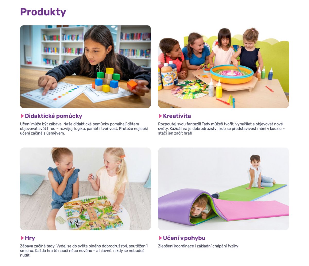 U produktů nám šlo zejména o to, aby si každý mohl udělat dobrou představu o tom, co Zábavné učení nabízí. Ukázat průřez tím nejzajímavějším, ale ne nutně odprezentavat kompletní nabídku.