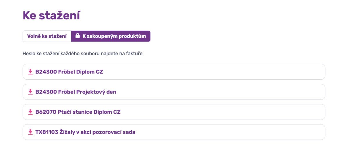 Některé jsou dostupné volně, jiné vázané na koupi konkrétního produktu. Ty druhé jsme doplnili o povinnost vyplnění hesla, bez kterého není jejich stažení možné.